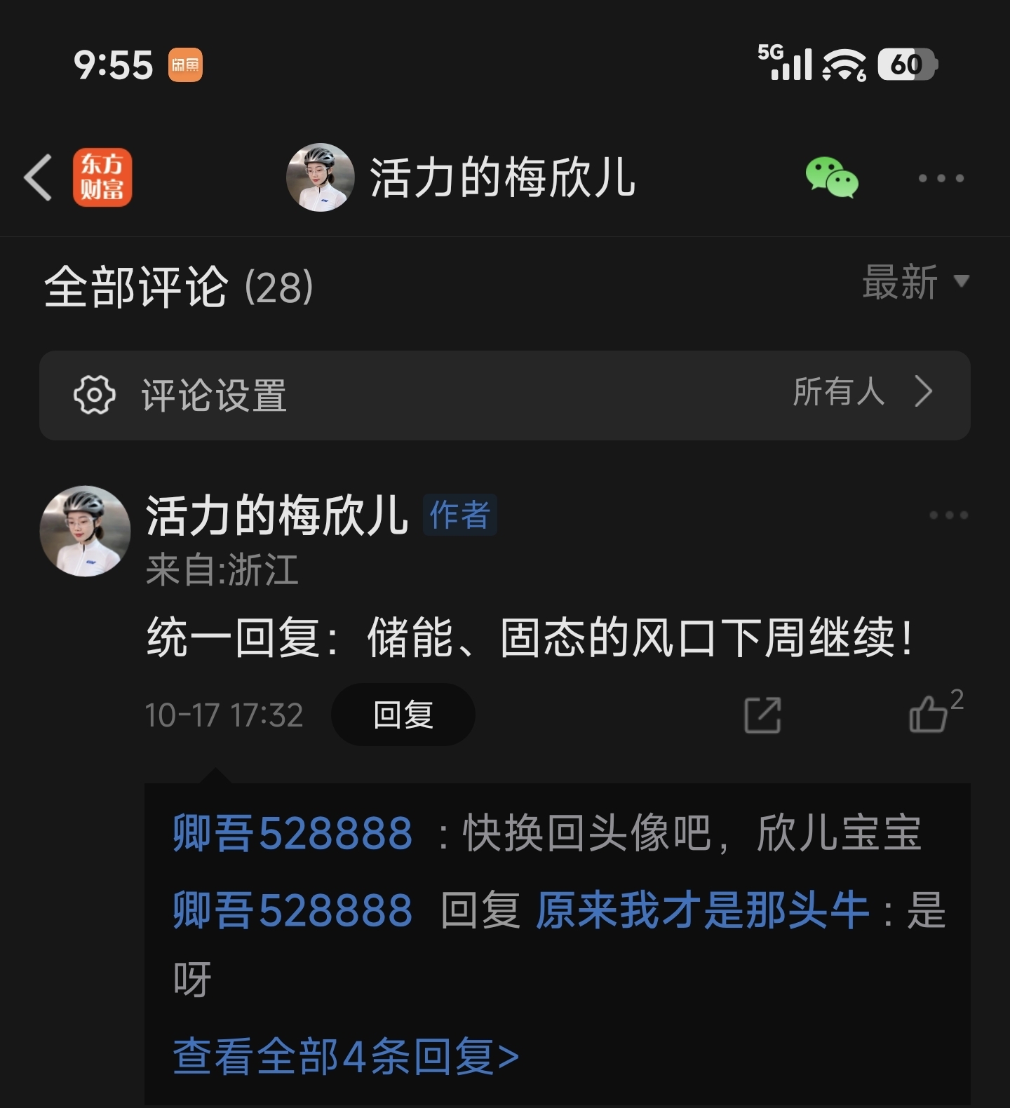 温馨提示: 1.根据《证券法》规定,禁止编造、传播虚假信息或者误导性信息,扰乱证券市场;2.用户在本社区发表的所有资料、言论等仅代表个人观点,与本网站立场无关,不对您构成任何投资建议。用户应基于自己的独立判断,自行决定证券投资并承担相应风险。《东方财富社区管理规定》