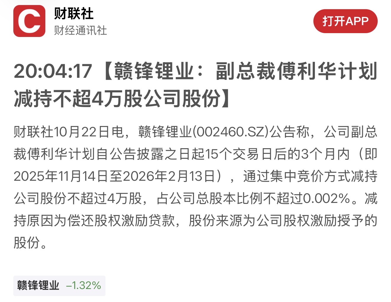 $赣锋锂业(SZ002460)$ 这么点股份,慌什么,大惊小怪