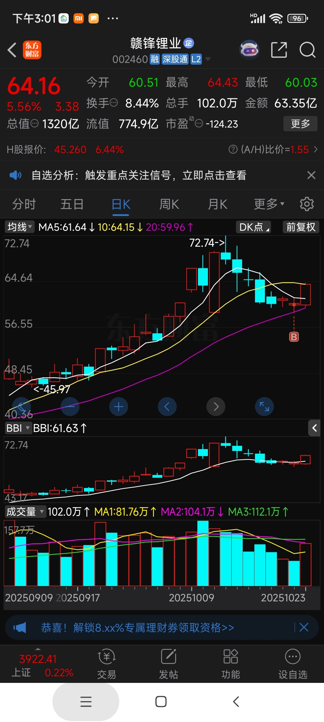 $赣锋锂业(SZ002460)$ 哈哈昨天买的怎么样