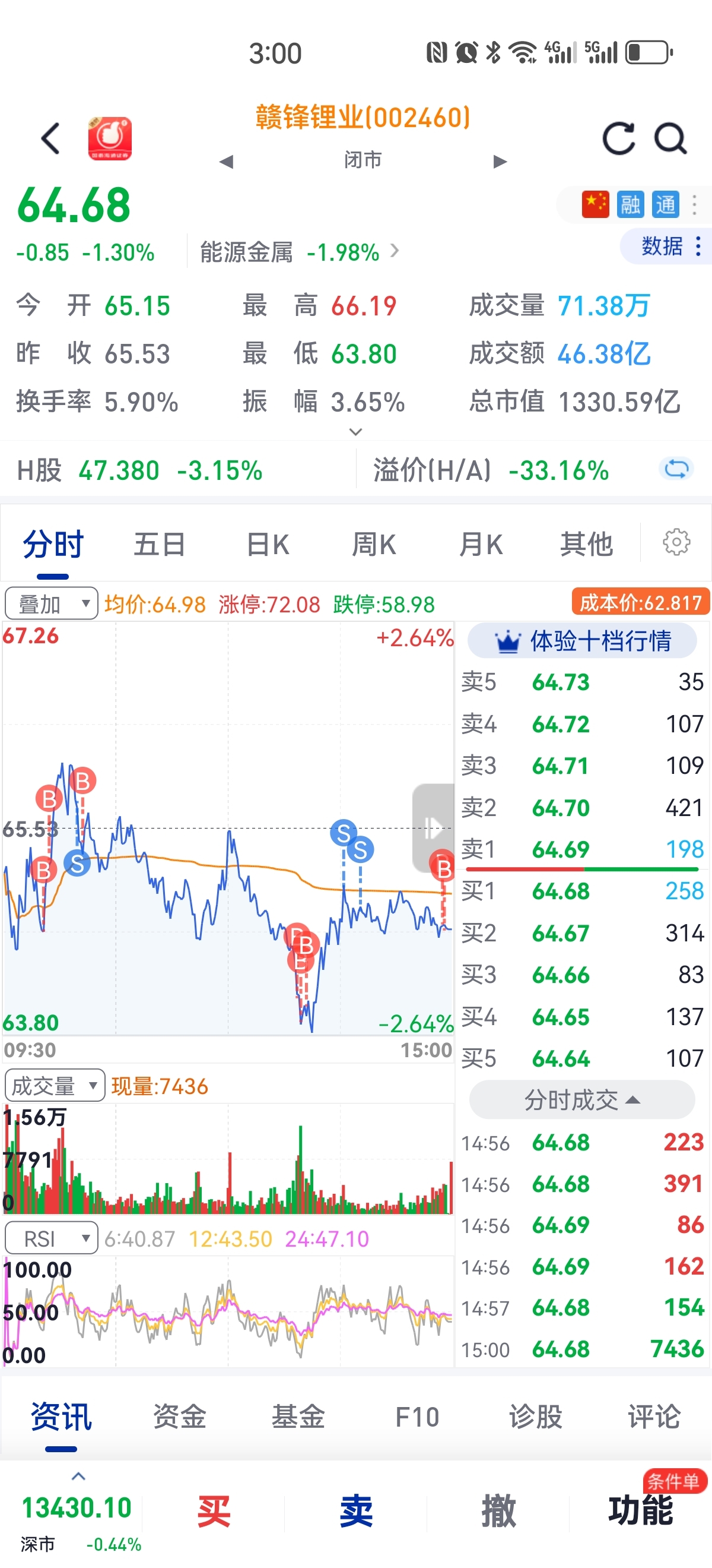 $赣锋锂业(SZ002460)$ T了一天真是煎熬,尾盘加仓了,爱咋咋地