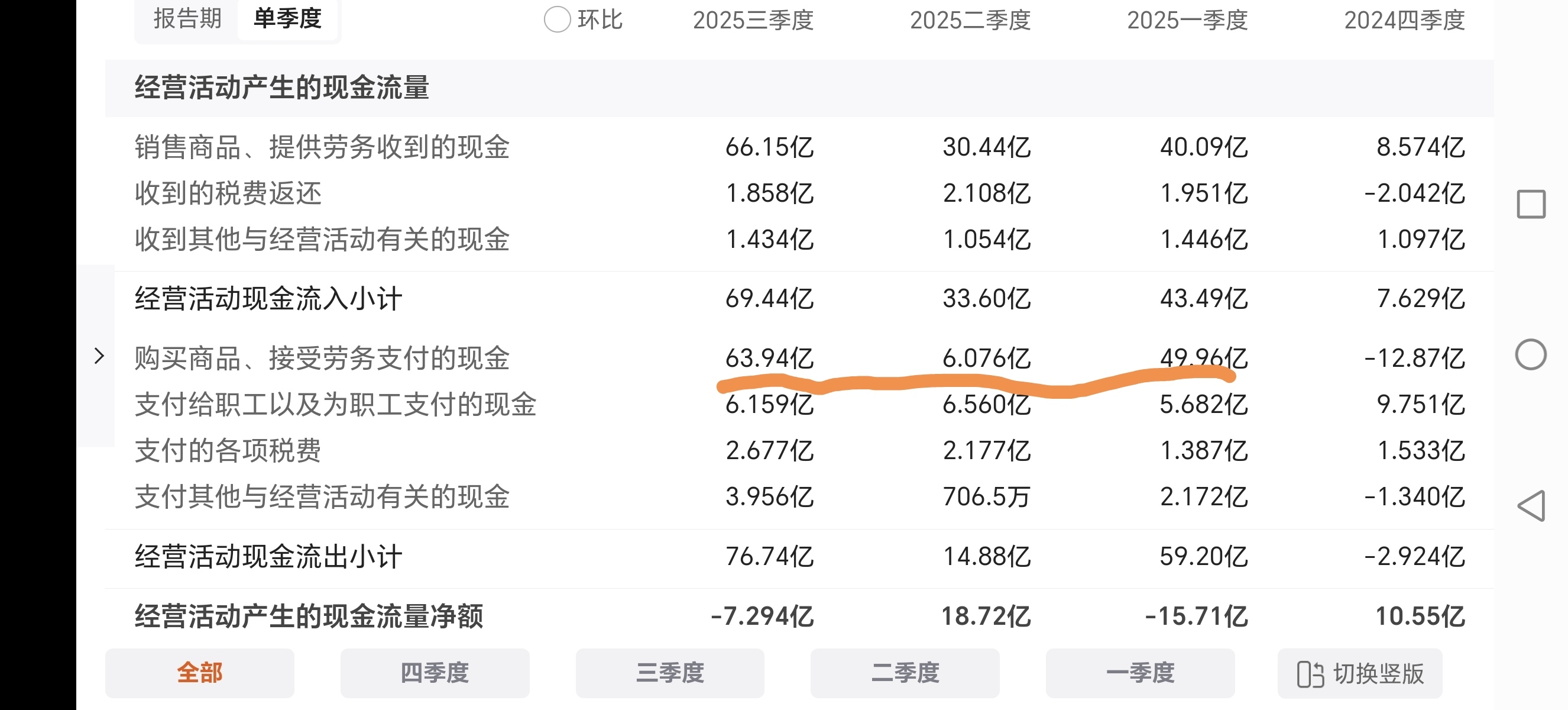 $赣锋锂业(SZ002460)$ 一事不明,赣锋购买商品支付劳务的费用为什么波动巨大?有明白的大佬解释一下吧。去年第四季度还是负的。