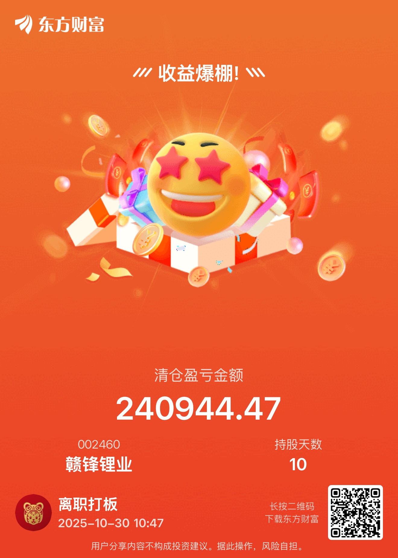 $赣锋锂业(SZ002460)$ 上午忙了,没卖好,xdm再见,祝发财,还会回来的