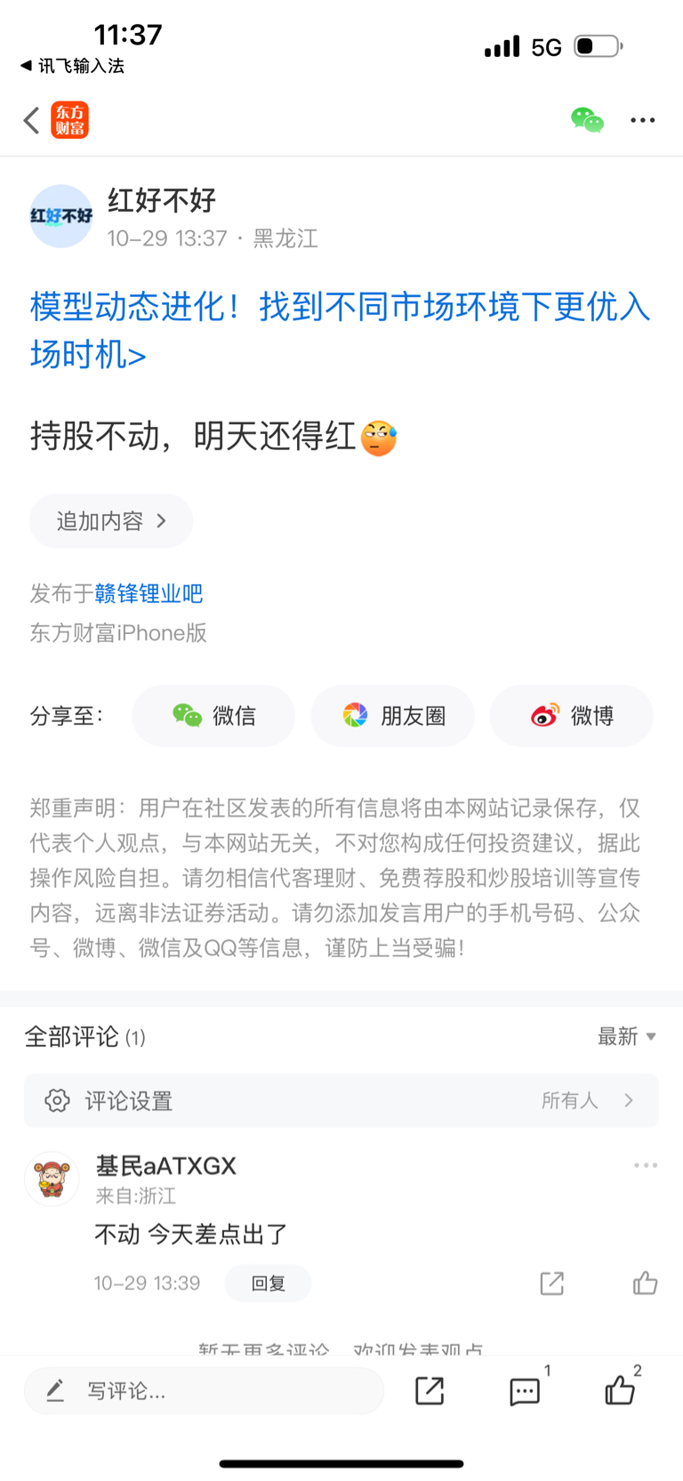 温馨提示: 1.根据《证券法》规定,禁止编造、传播虚假信息或者误导性信息,扰乱证券市场;2.用户在本社区发表的所有资料、言论等仅代表个人观点,与本网站立场无关,不对您构成任何投资建议。用户应基于自己的独立判断,自行决定证券投资并承担相应风险。《东方财富社区管理规定》