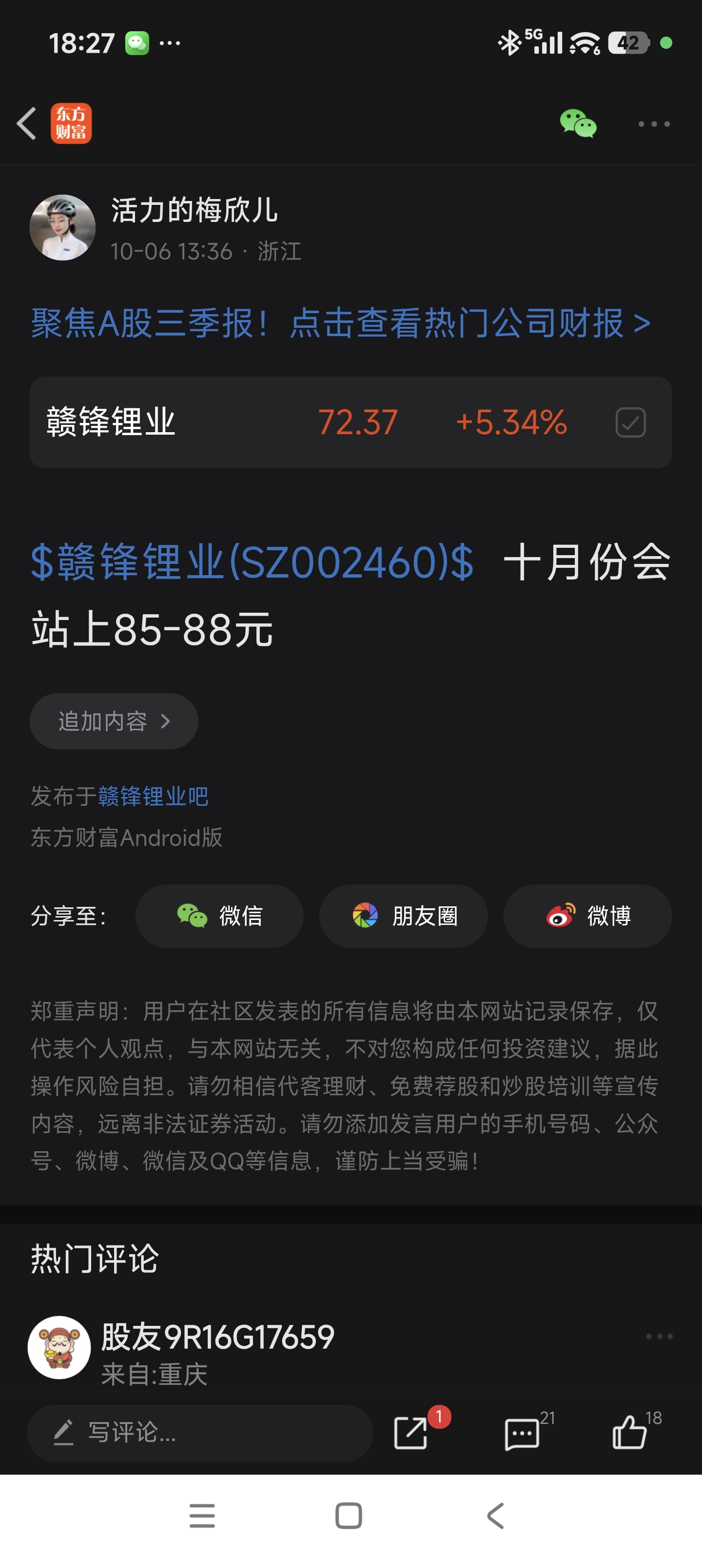 $赣锋锂业(SZ002460)$ 赣锋第一个市值目标位到了!十月份之前预测的,1500亿市值到2000亿市值就会加速了。但是加速的过程是比较颠簸的,大家一定要拿好了!