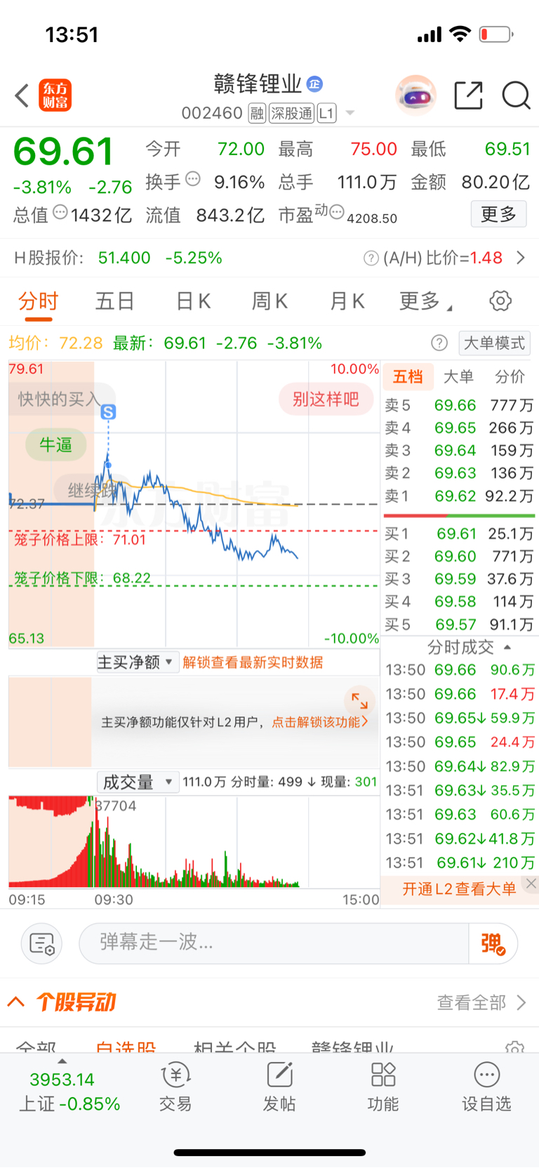$赣锋锂业(SZ002460)$ 留下的发财 我不打扰 我先走了