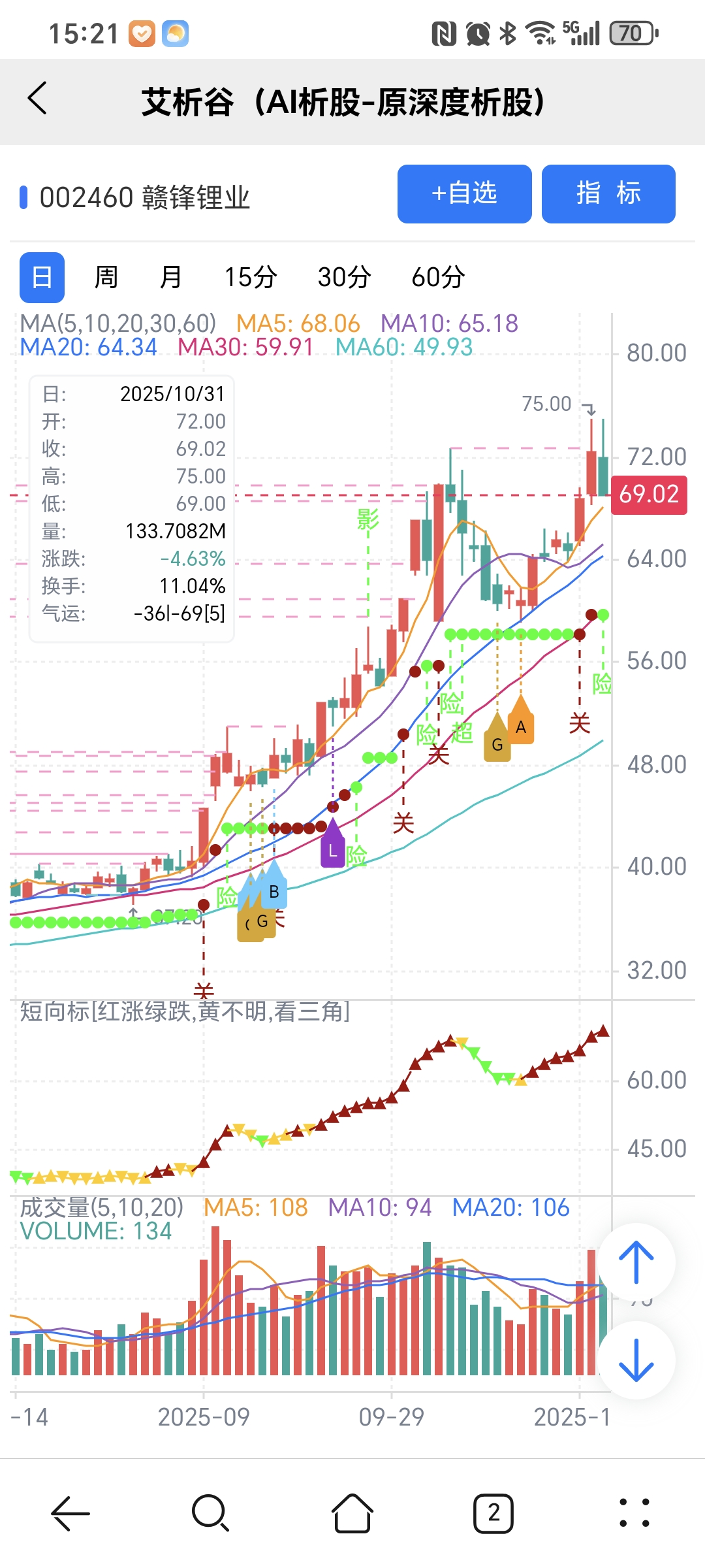 图中A、B、G、L 关注标记是对应AI选股模型当天下午2点多给出。