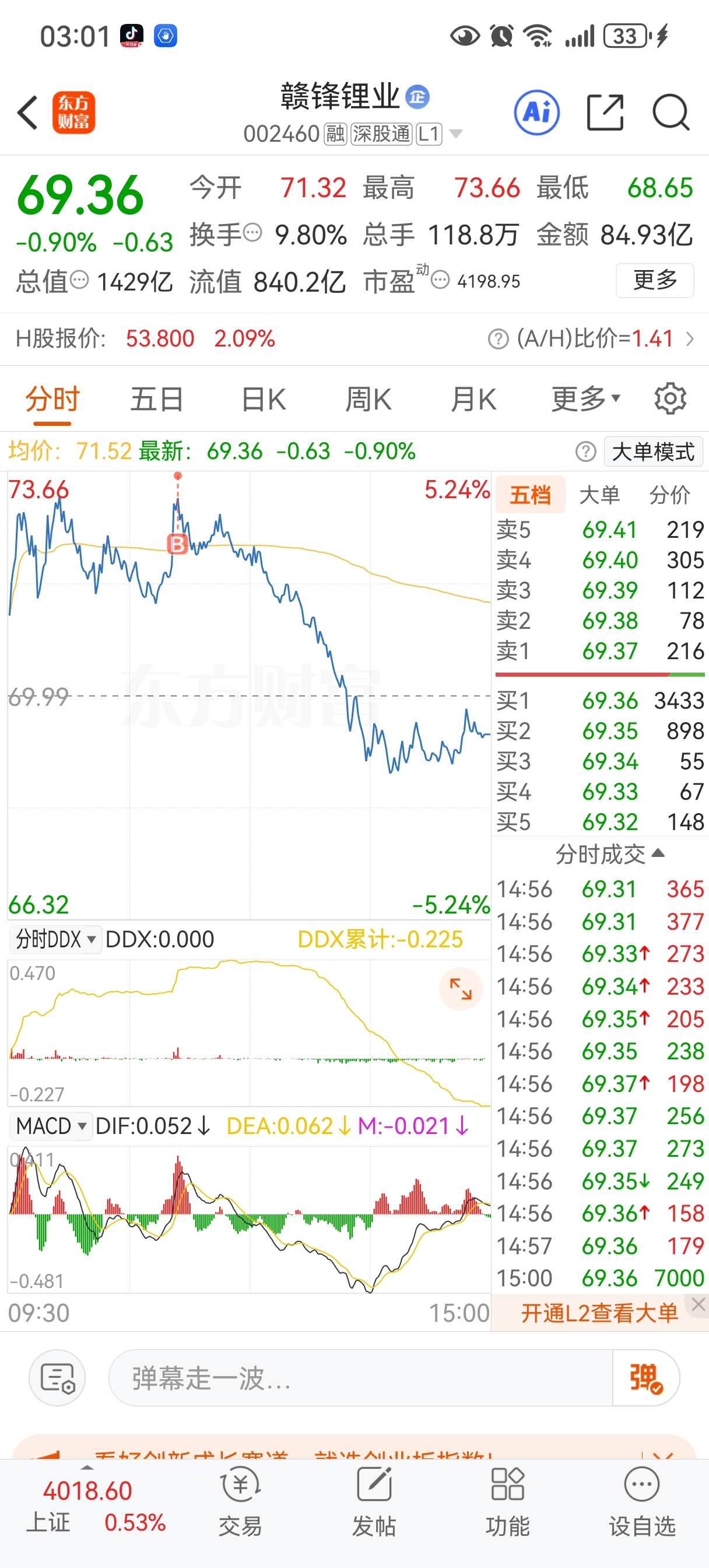 $赣锋锂业(SZ002460)$ 这贴我不发不行了,进来就跌成这熊样