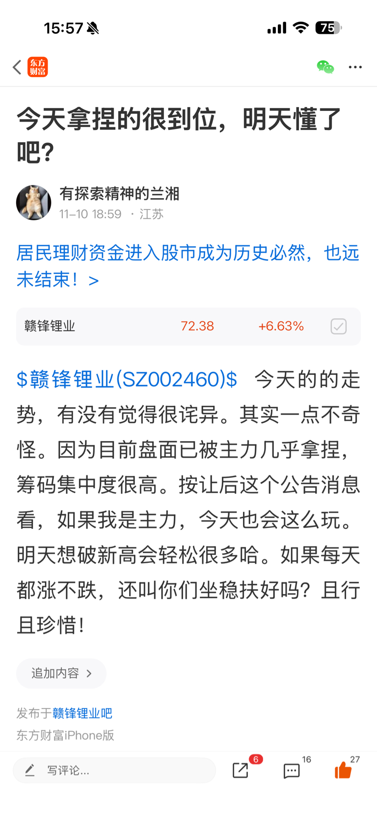$赣锋锂业(SZ002460)$ $天齐锂业(SZ002466)$ 我说的能听懂的,今天吃大肉了。那些热嘲冷讽的,今天你们还笑的出来不?抄作业都不会。破百也就是时间问题。坐稳扶好