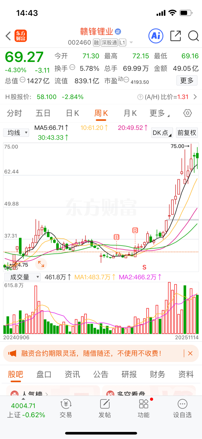 $赣锋锂业(SZ002460)$ 被锋哥洗出情绪了