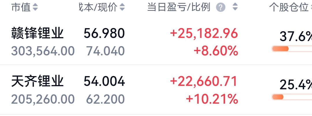 $赣锋锂业(SZ002460)$ 每日一贴,距离上次发仓位已过2天,赣锋清5个,长期看好,震荡市高抛低吸,上升趋势保留大部分仓位,减少操作,偶尔手痒可以玩一下