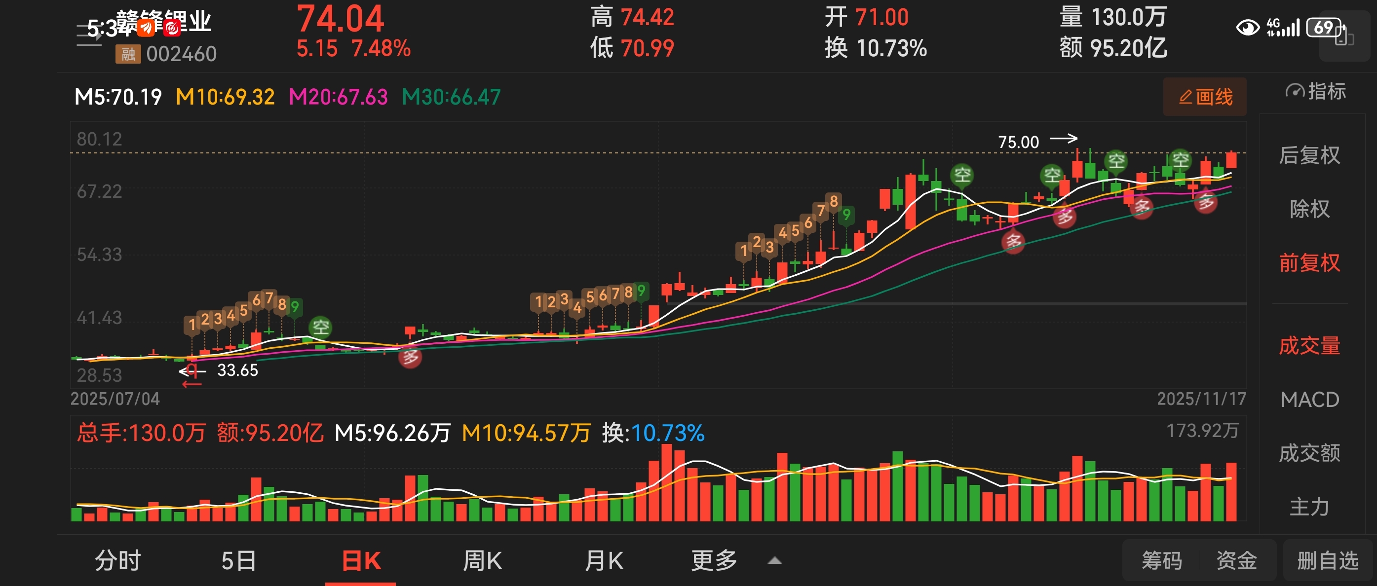 $赣锋锂业(SZ002460)$ 11.6号分享赣锋锂业,一路小涨,继续看好