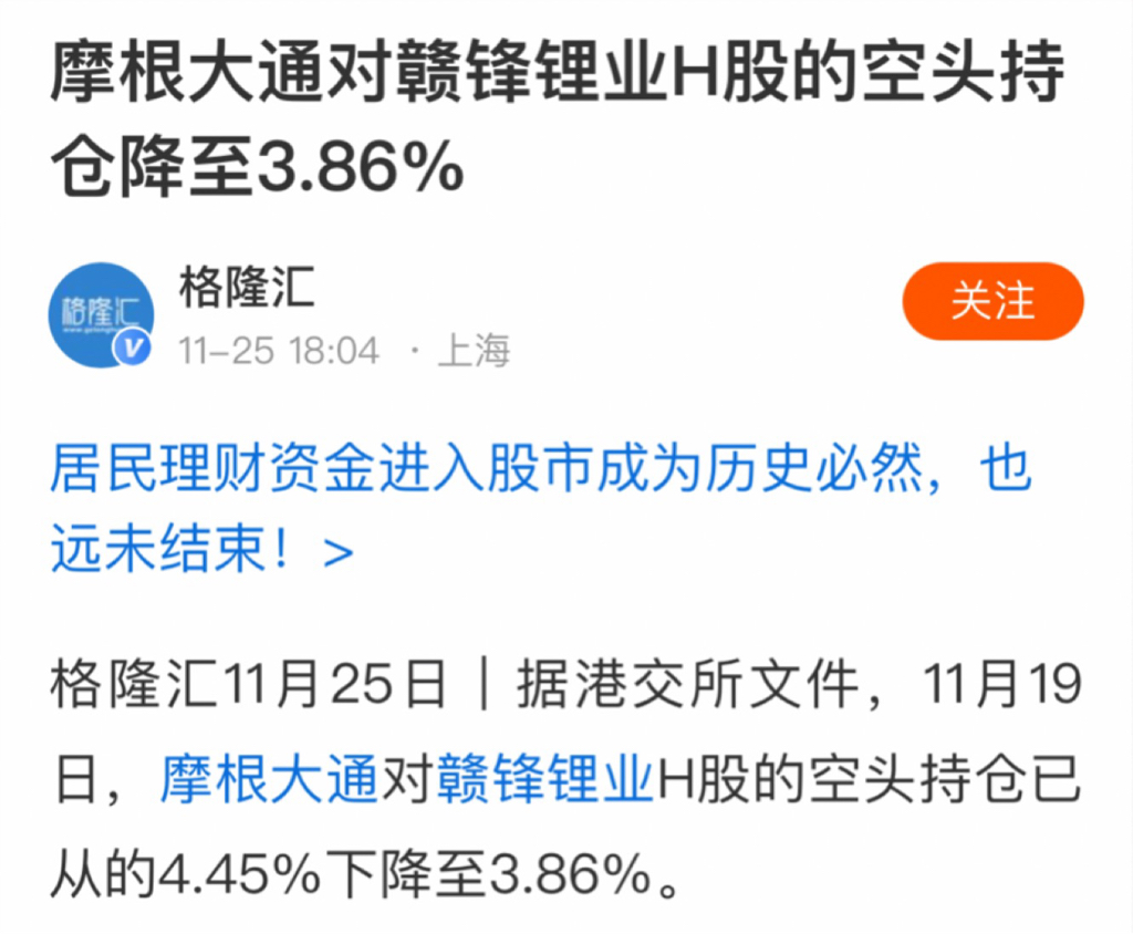 $赣锋锂业(SZ002460)$ 打到空头摩根大通