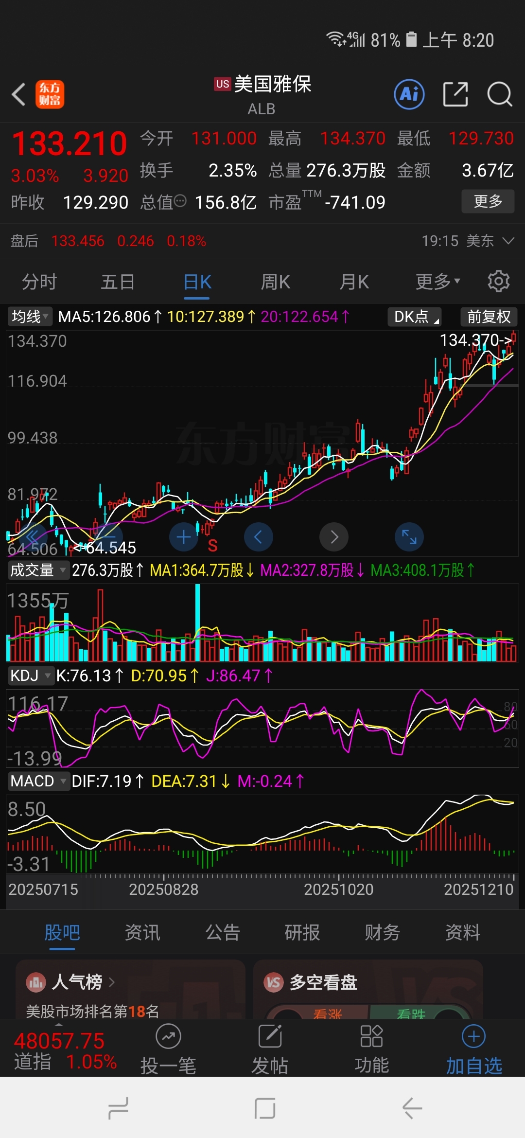 隔夜美股锂龙头雅宝已从月初的调整中再创新高!(赣锋天齐与之走势较关联)!储能龙头