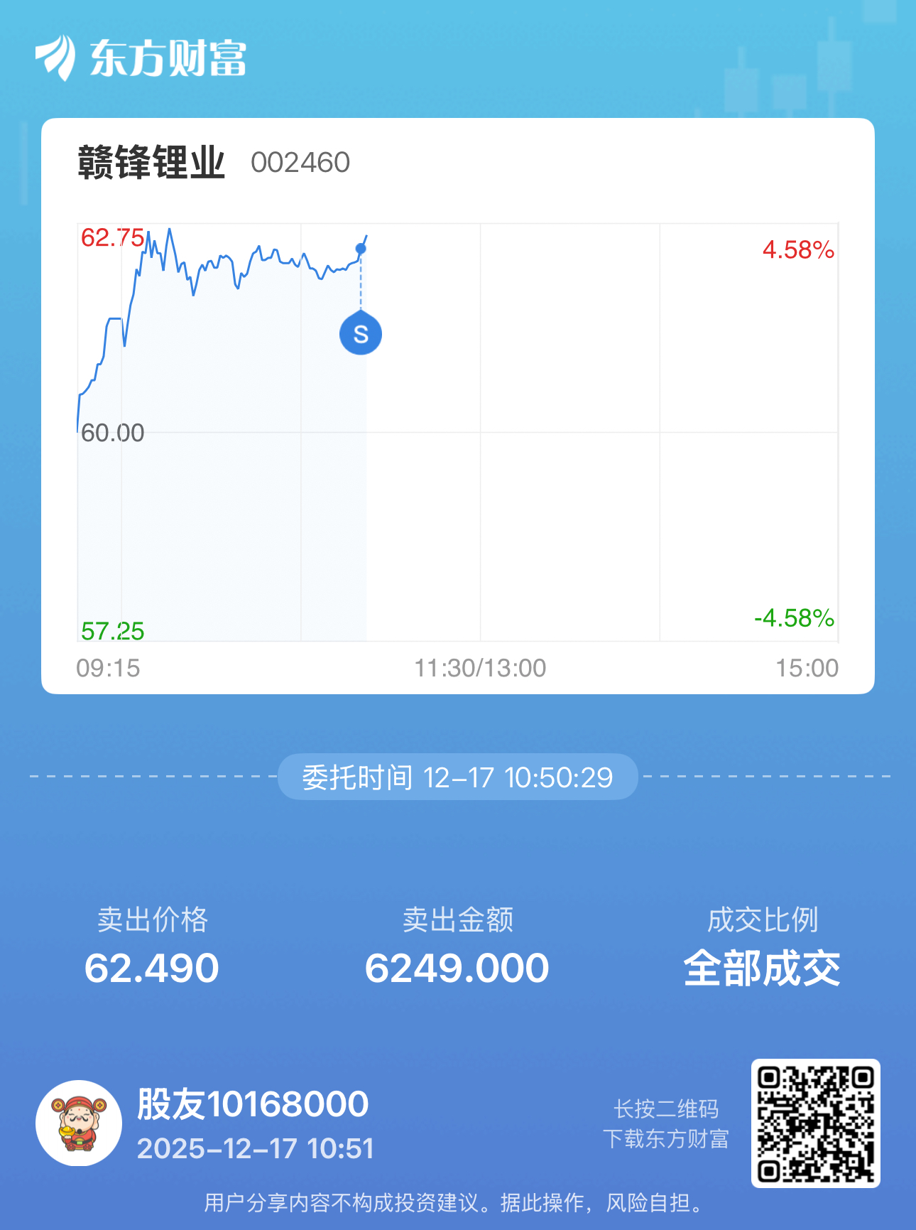 $赣锋锂业(SZ002460)$ 已清仓,主力请拉升