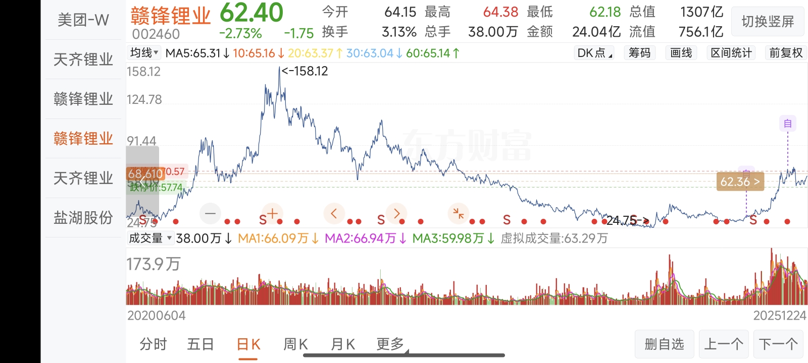 $赣锋锂业(SZ002460)$ 看图,最近不可能上涨。所以碳酸锂期货一直涨,但是碳酸锂股票却不涨的原因。