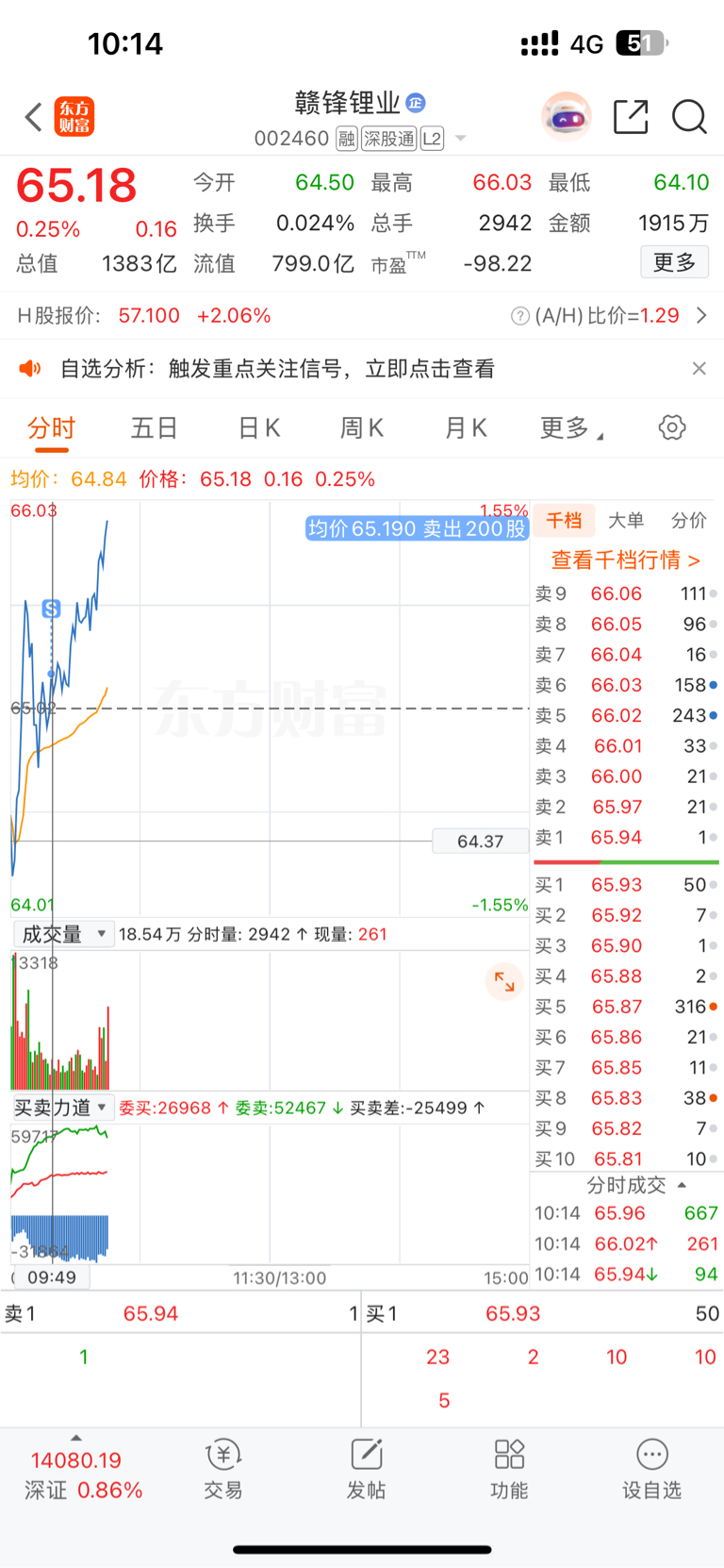 $赣锋锂业(SZ002460)$ 昨日建仓200股,今天65.2果断卖出,盈利40元,小本炒股宁可少赚不许大亏