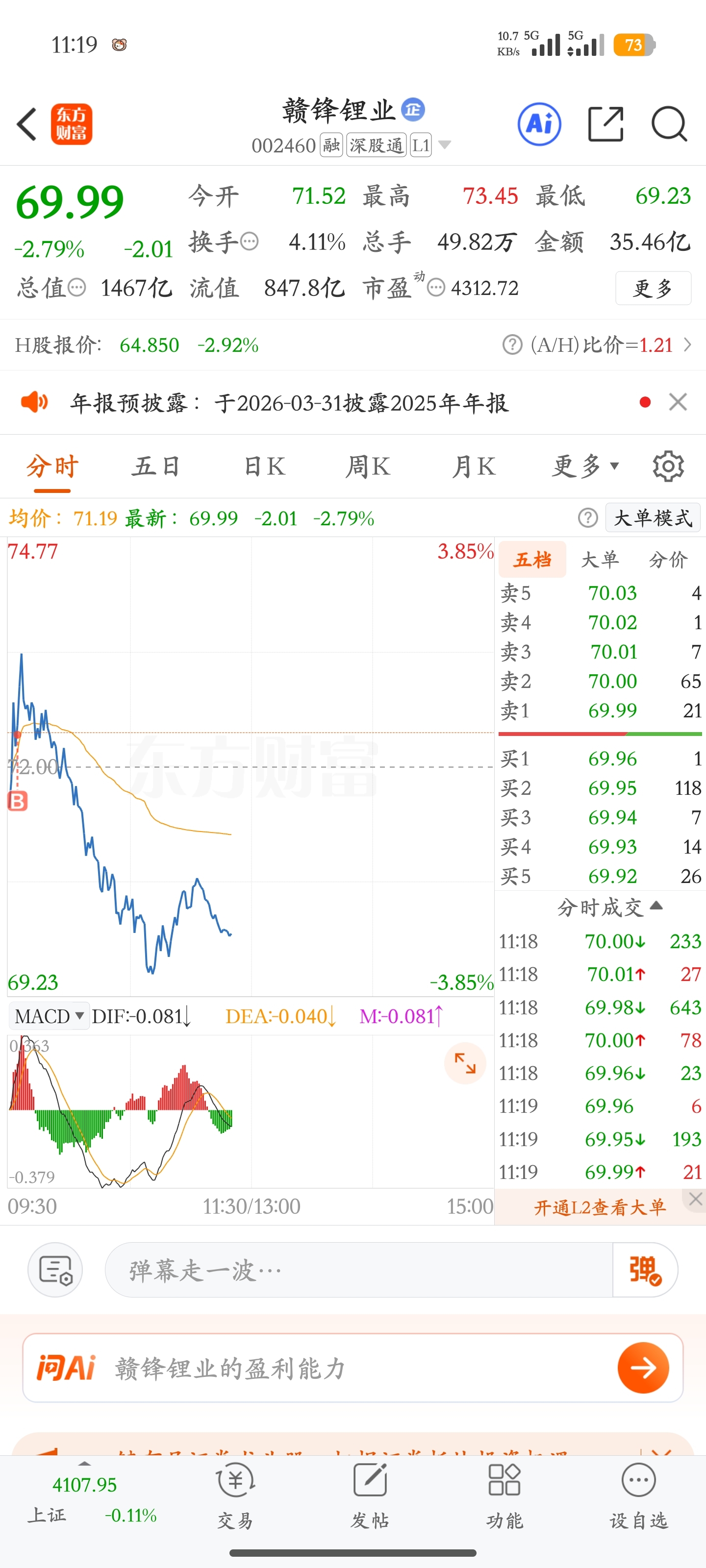 $赣锋锂业(SZ002460)$ 买的太急了,开盘冲进去的,亏了3个点了