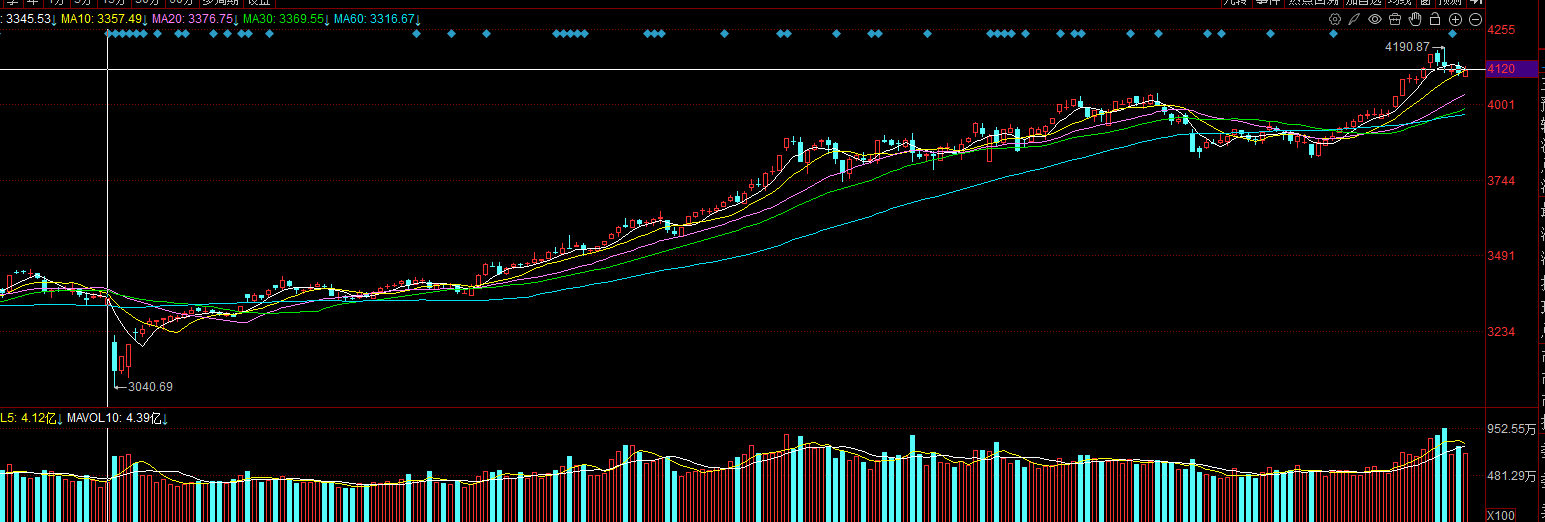 周二市场见一个重要低点的预期还是比较大,因为现在这个形态确认了大盘这里不是尖顶,所以即使4190是阶段性的顶部,也会有一个回视的动作,回视的区间在4150一线。板块方面,券商板块已经连续回调五个交易日了,周一是个阴下星的形态,周二券商有望探底回升的,就是要关注它探底回升的力度,如果券商力度强,那大盘有可能就要去创新高了,经过这几天的连续调整,很多板块又到了不错的位置,像煤炭板块,软件板块也调到十日线了,机器人,半导体这些虽然涨了单页都没走完,所以依然还是可以继续研究!