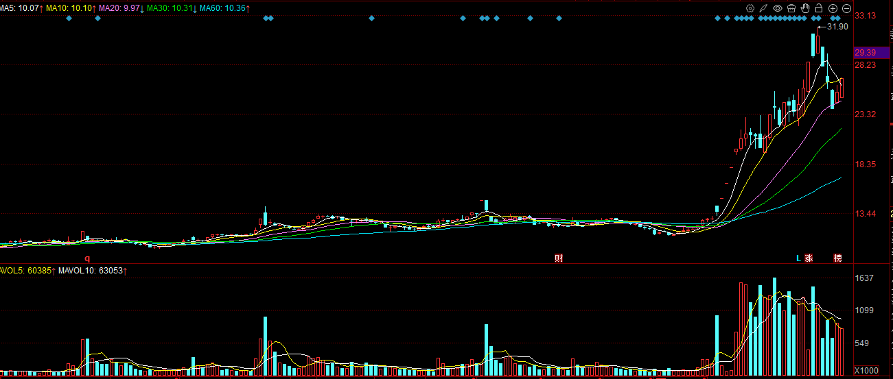 山子高科000981:公司订单端亮点突出,与宁德时代签订超 80 小目标锂电隔膜协议,邦奇动力中标斯特兰蒂斯变速箱订单,在利好刺激之下,最近两个交易日虽然没有太亮眼的表现,但是依然还是守住了下方十日线的支撑,现在均线是标准的多头,十日线是短期紫金的成本线,周二只要不破还是可以继续等等。从月线来看,现在位置也不算太高,短期降低预期,中期有耐心还是有望走出加速行情的。