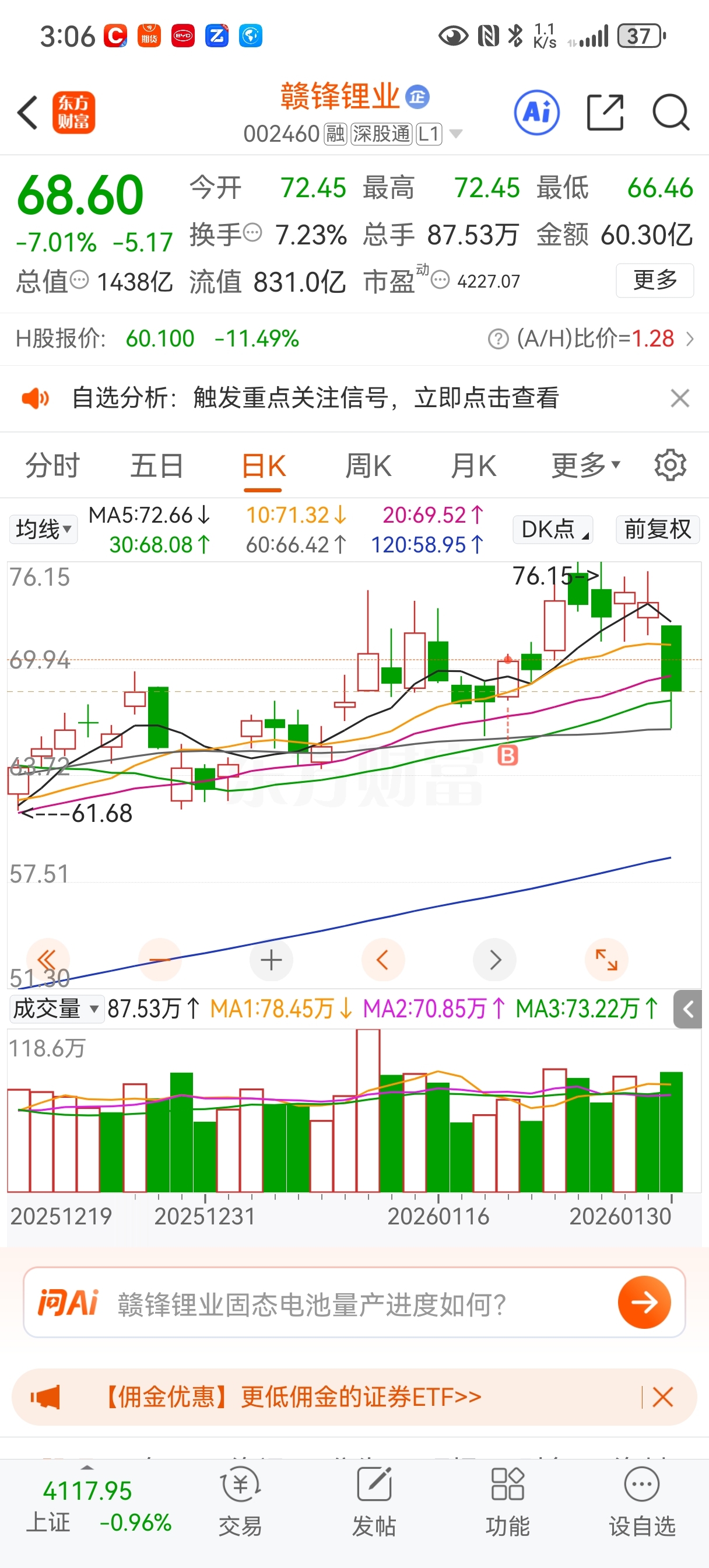$赣锋锂业(SZ002460)$ 一个礼拜白玩,还倒贴