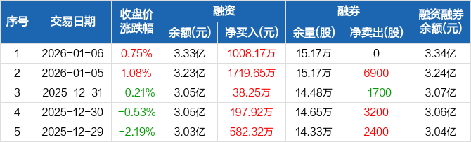珠江啤酒:融资余额3.33亿元,创近一年新高(01-06)