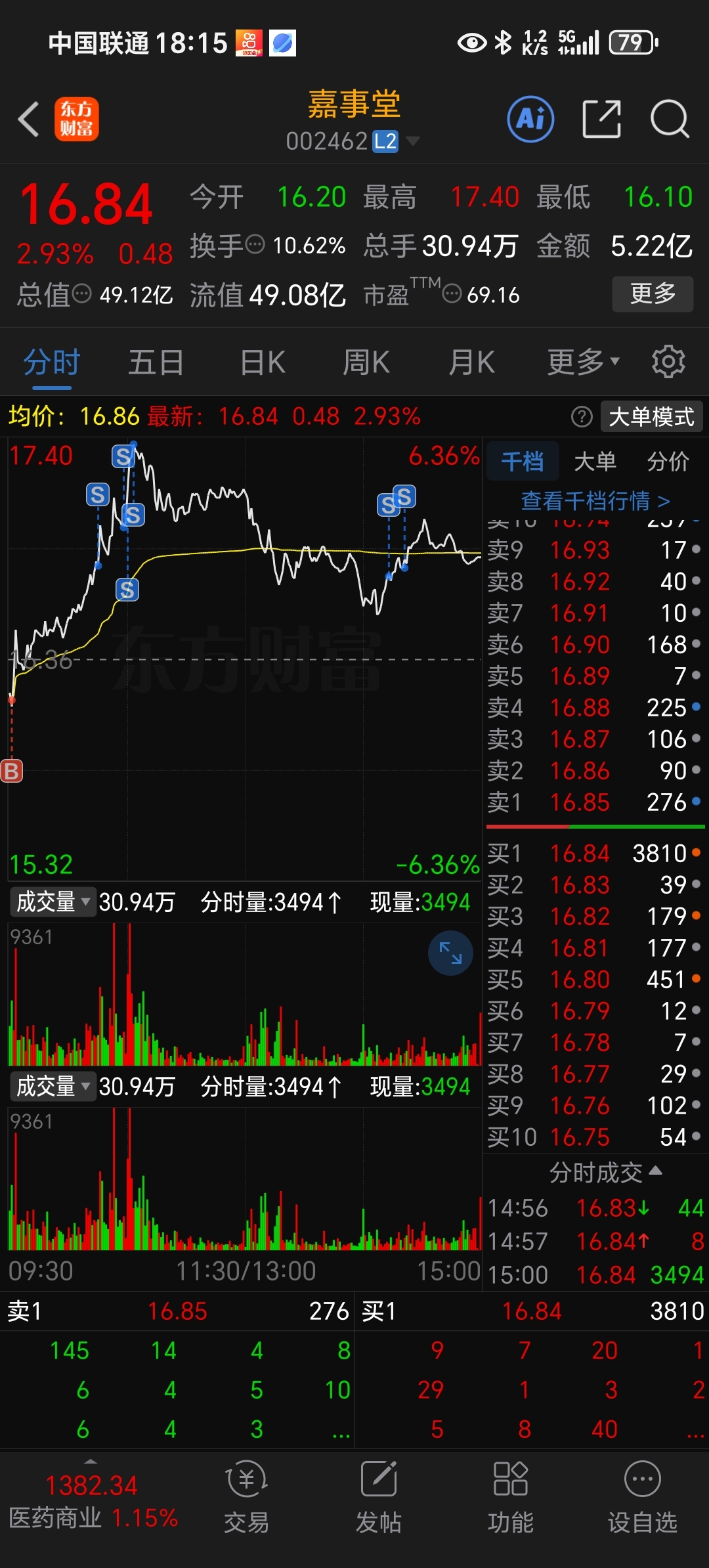 $嘉事堂(SZ002462)$ 只剩今天买的一千股了,那五千股割了
