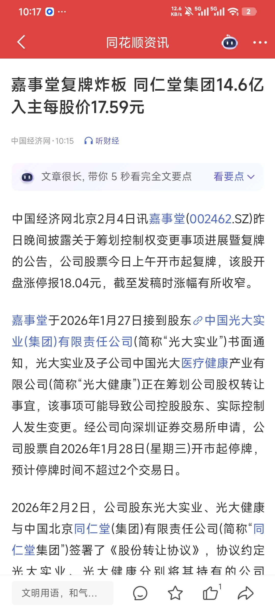 $嘉事堂(SZ002462)$ 北京国资今天亏了多少
