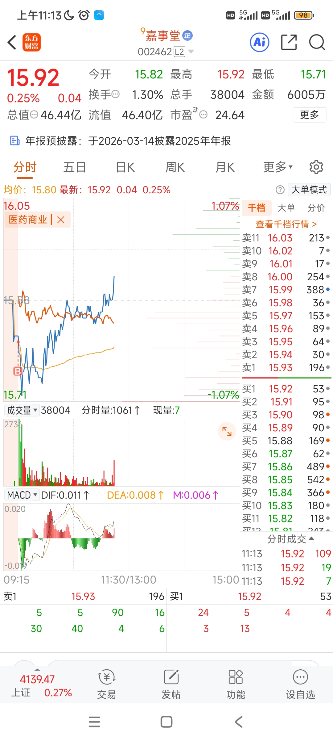 $嘉事堂(SZ002462)$ 隔夜单15.81已买入,怕踏空还是着急了一点,不过看和板块的互动情况就知道已经稳了