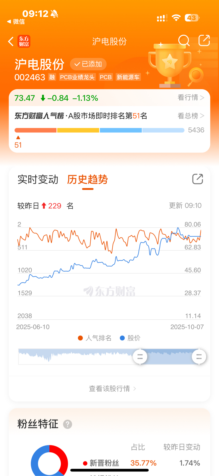 $沪电股份(SZ002463)$ 沪电的人气排名历史新高