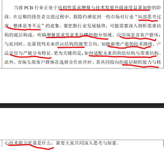 3. 暗示大家沪电做好了“新增产能的技术路线、产品定位与产能分布”,“适配未来的供给结构与需求结构”,并明确指出“市场头部客户群体在选择合作伙伴时,其共同指向的底层制程能力与核