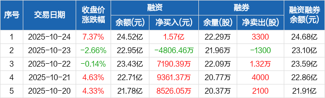 沪电股份:融资净买入1.57亿元,融资余额24.52亿元(10-24)