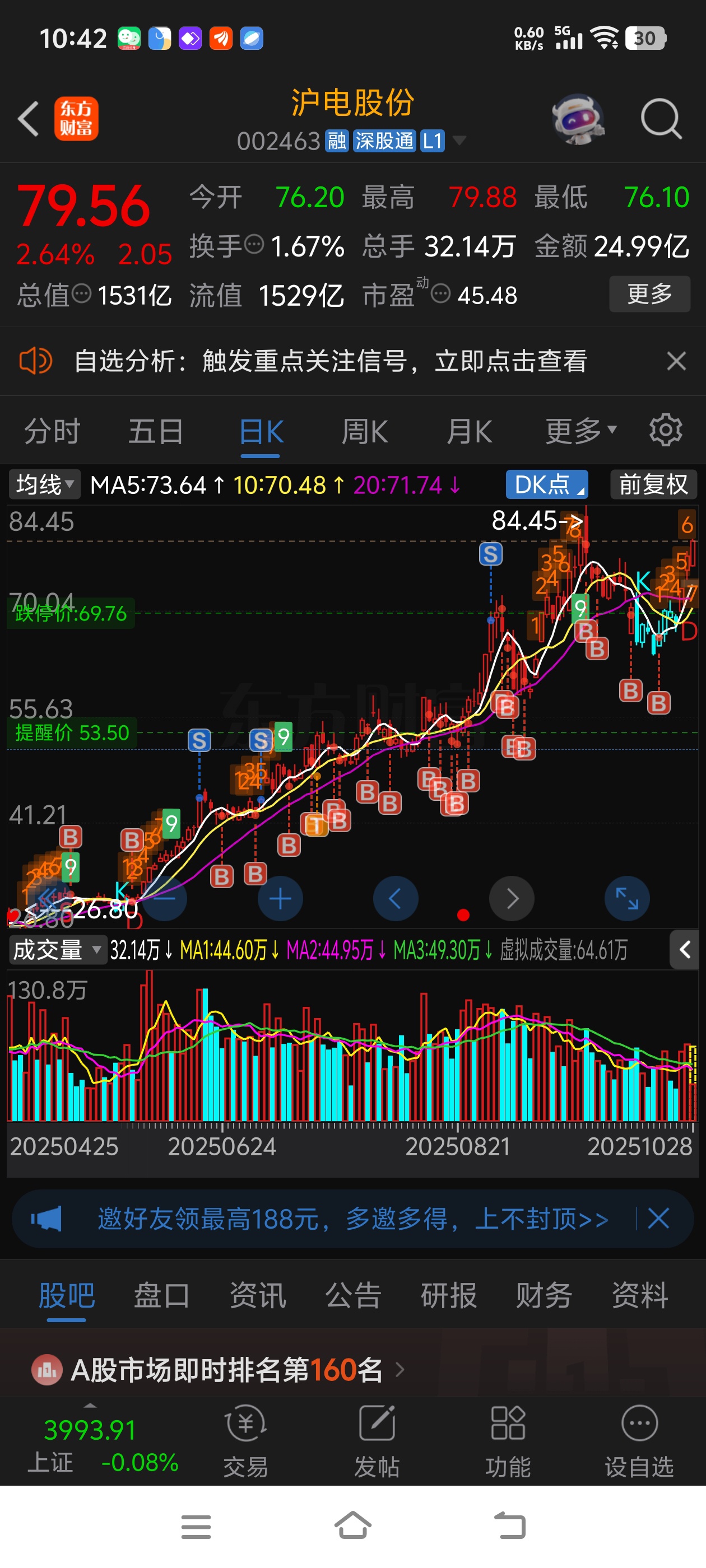 $沪电股份(SZ002463)$ 兄弟们,这孩子是现在跑路,还是再格局格局等新高呢?好犹豫啊[无聊]