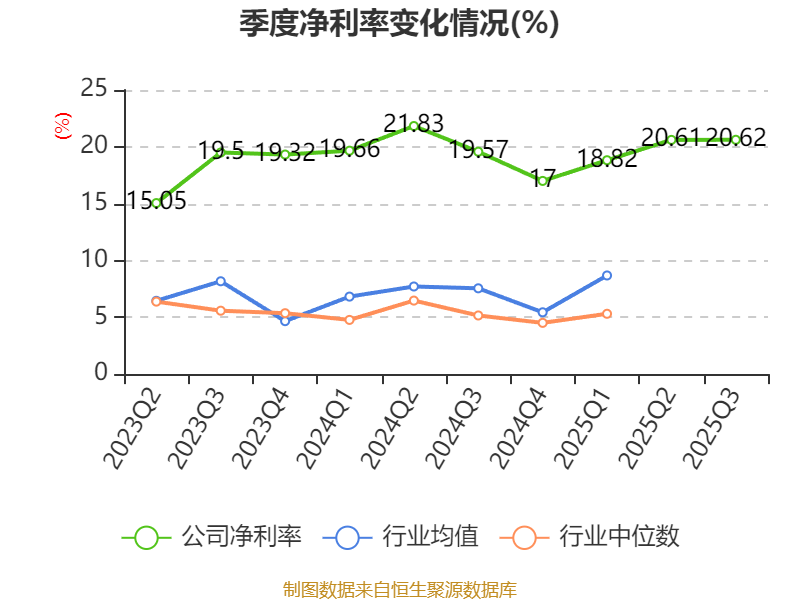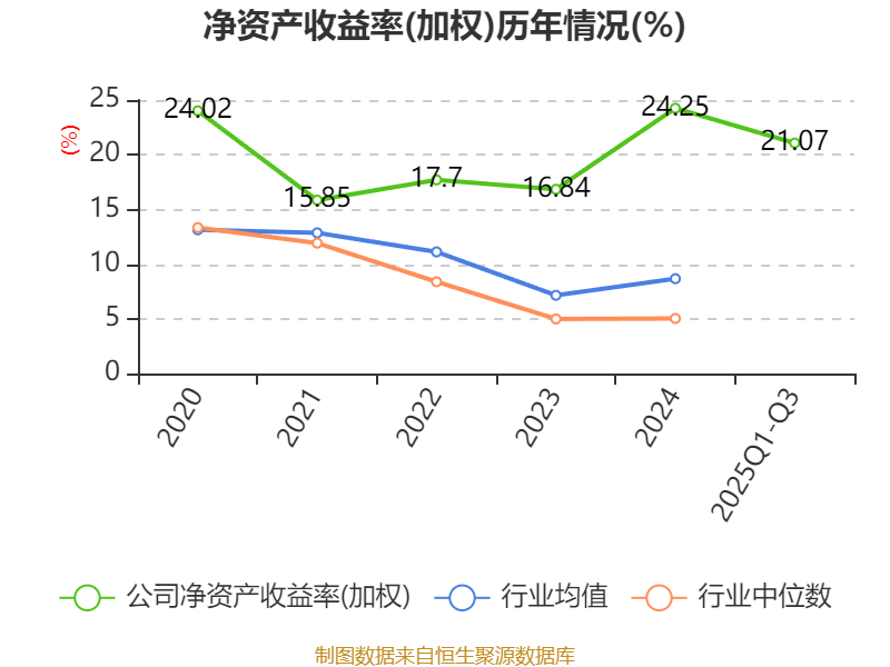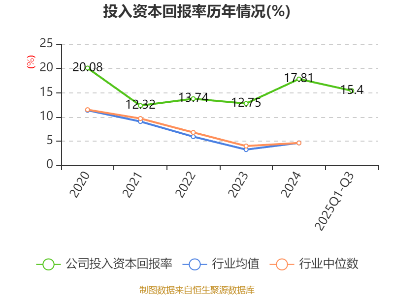 盈利能力方面, 2025年前三季度公司加权平均净资产收益率为21.07%,同比上升3.24个百分点。公司2025年前三季度投入资本回报率为15.4%,较上年同期上升2.26个百分点。