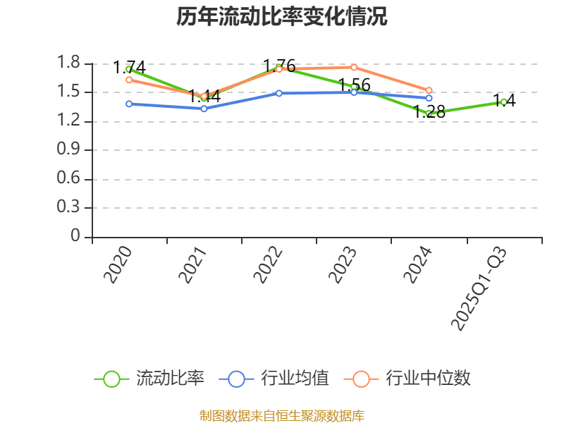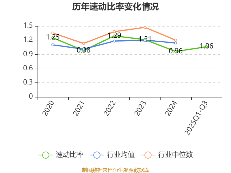 2025年前三季度,公司流动比率为1.4,速动比率为1.06。