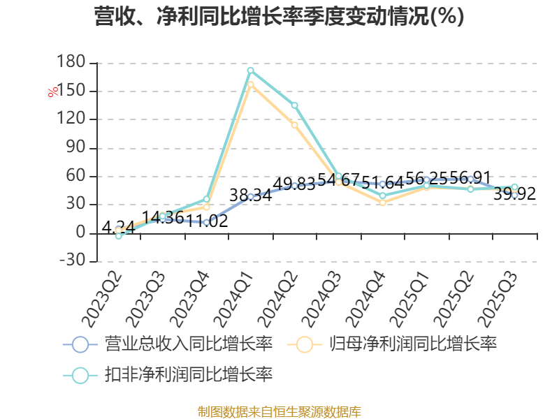 负债重大变化方面,截至2025年三季度末,公司短期借款较上年末增加82.85%,占公司总资产比重上升3.68个百分点;长期借款较上年末减少11.39%,占公司总资产比重下降1.77个百分点;应付票据及应付账款较上年末增加33.65%,占公司总资产比重上升1.51个百分点;应付职工薪酬较上年末减少7.84%,占公司总资产比重下降0.58个百分点。