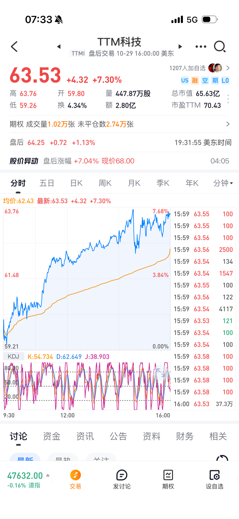 昨天晚上美国那边同行TTM科技公布的第三季度业绩,营收约54.2亿人民币,净利润