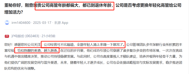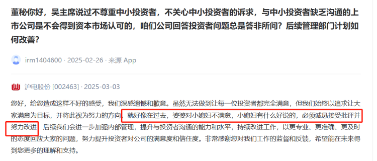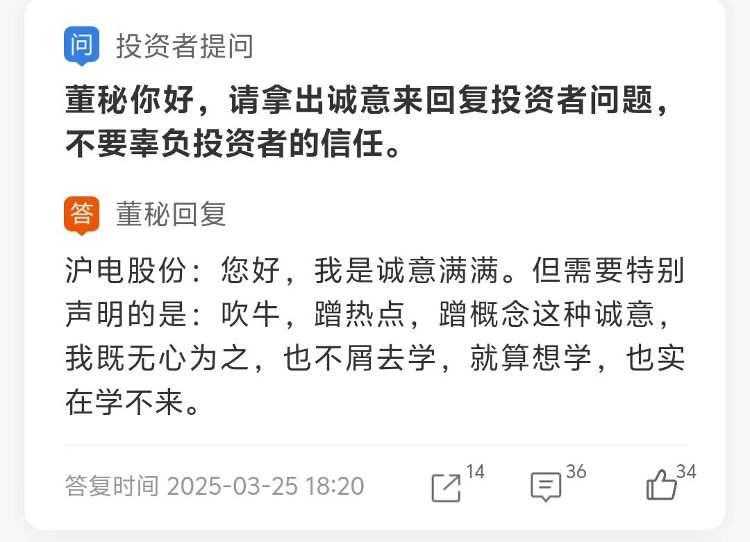 记者注意到,这已不是沪电股份董秘第一次以直接而幽默的方式回应投资者提问。