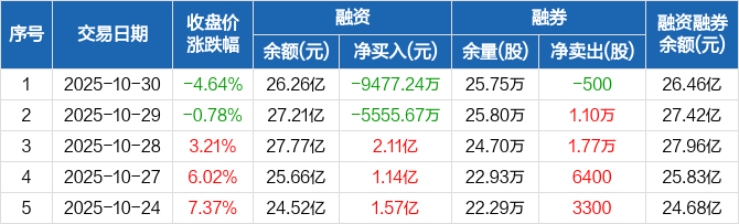 沪电股份:融资净偿还9477.24万元,融资余额26.26亿元(10-30)
