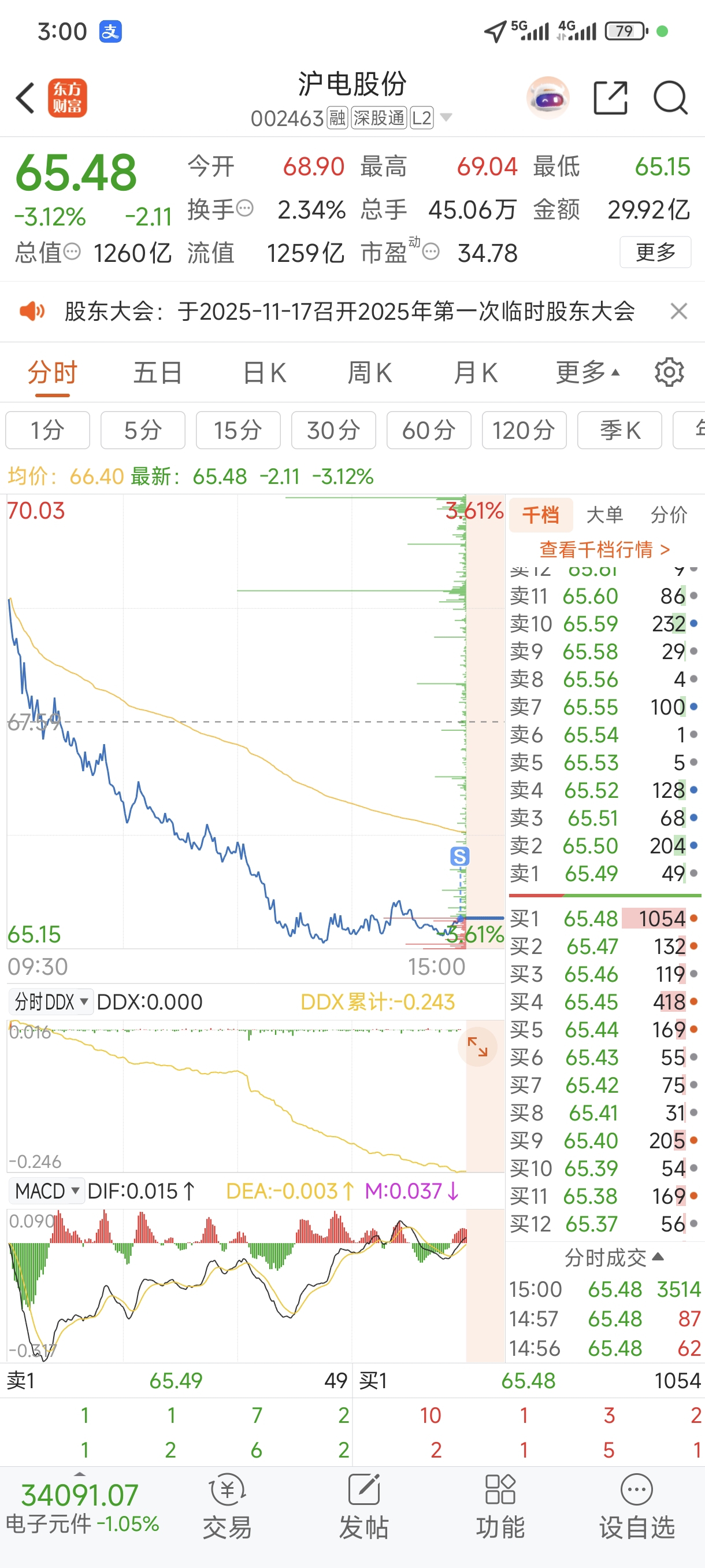 $沪电股份(SZ002463)$ 尾盘卖筹码,我不相信他不破64,企稳再接