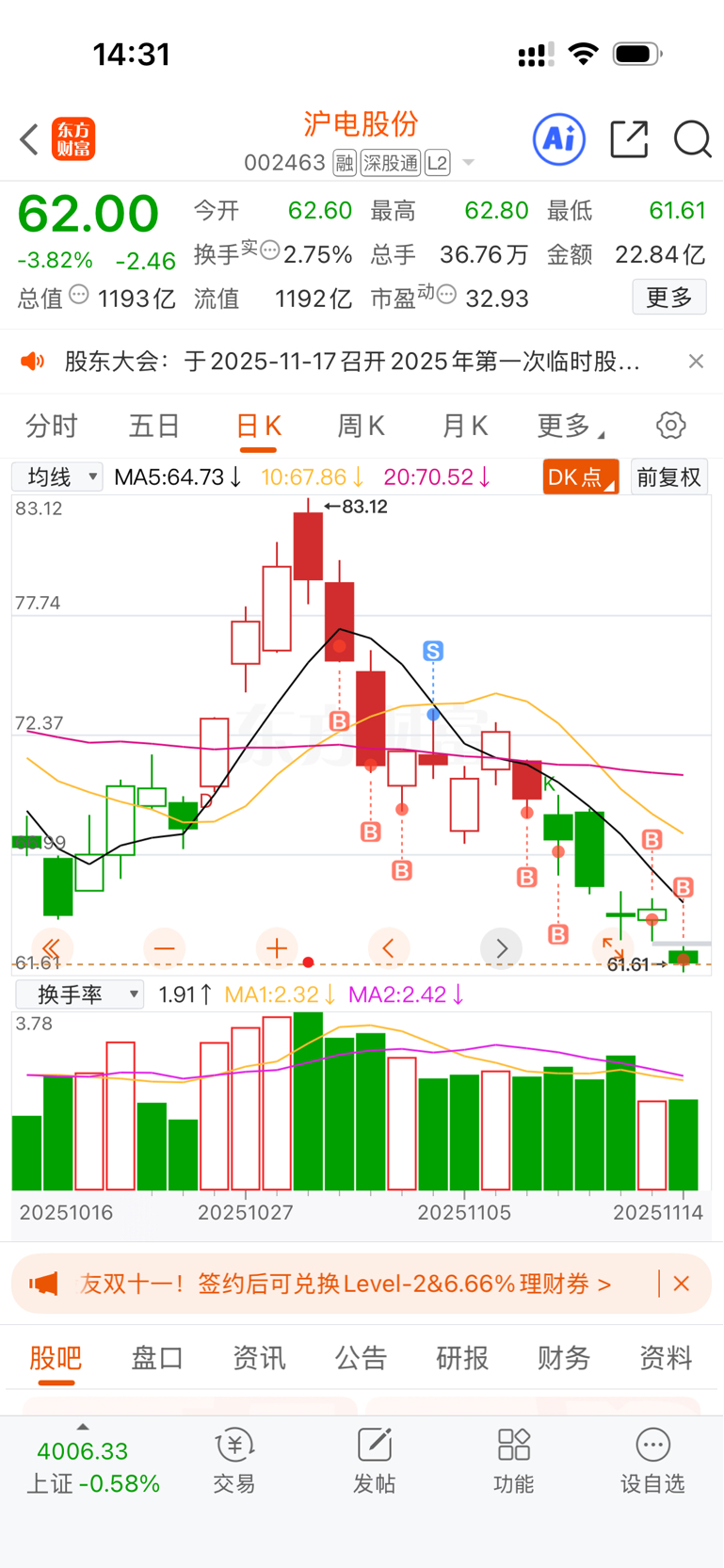 $沪电股份(SZ002463)$ 这是被我连累了的吗?一进就跌~
