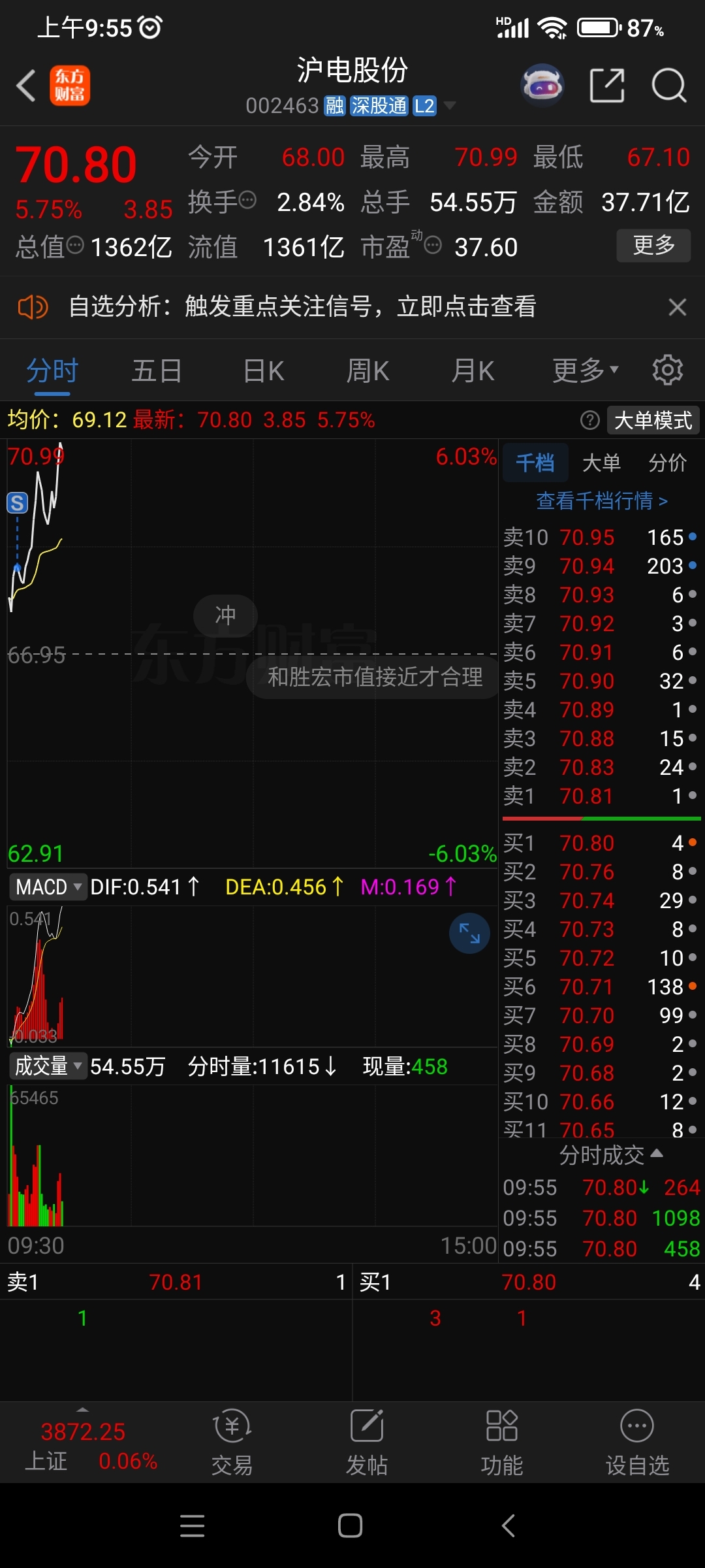 $沪电股份(SZ002463)$ T飞了