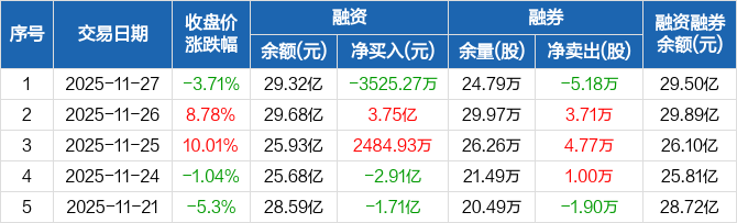 沪电股份:融资净偿还3525.27万元,融资余额29.32亿元(11-27)