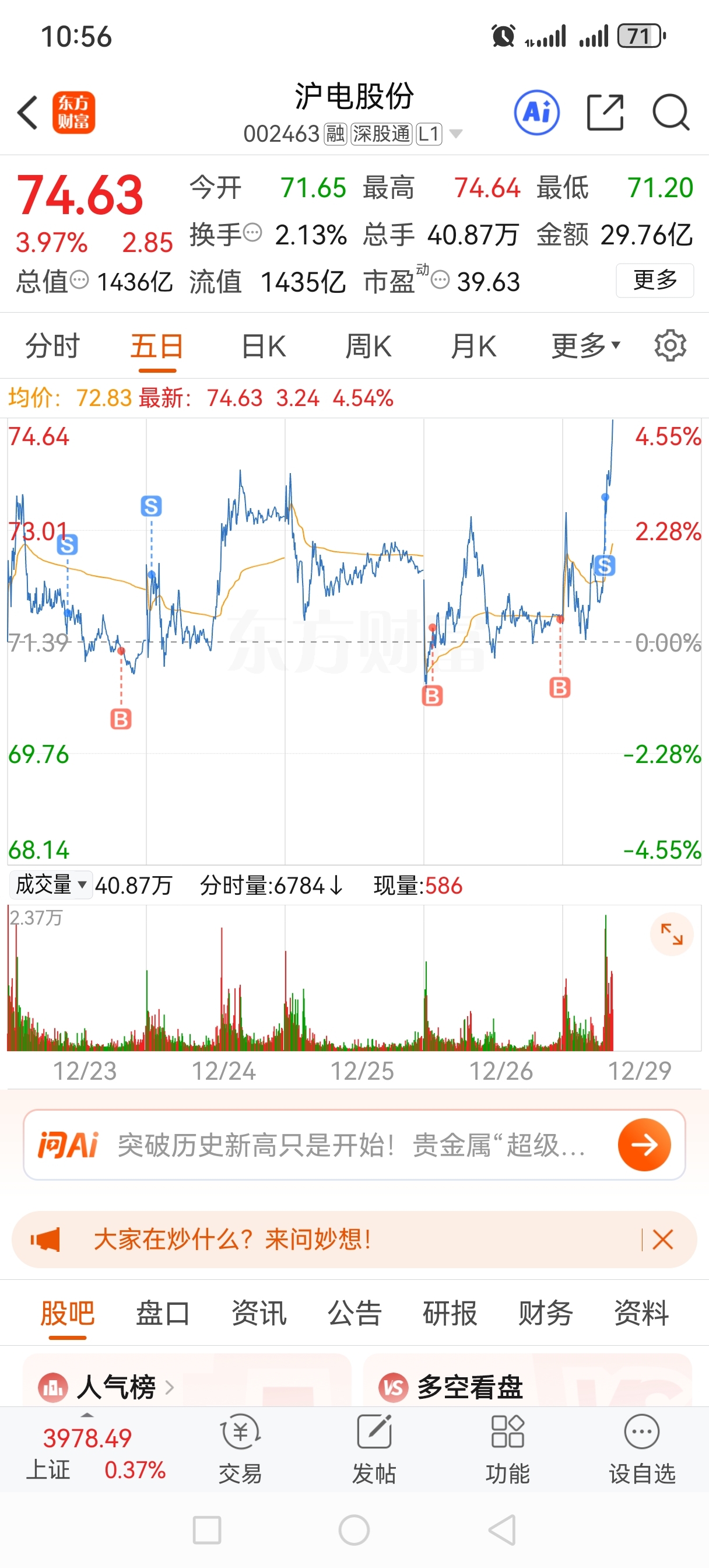 $沪电股份(SZ002463)$ 平时不挂单都盯盘,就今天挂单73.5,然后你突破了,唉~~