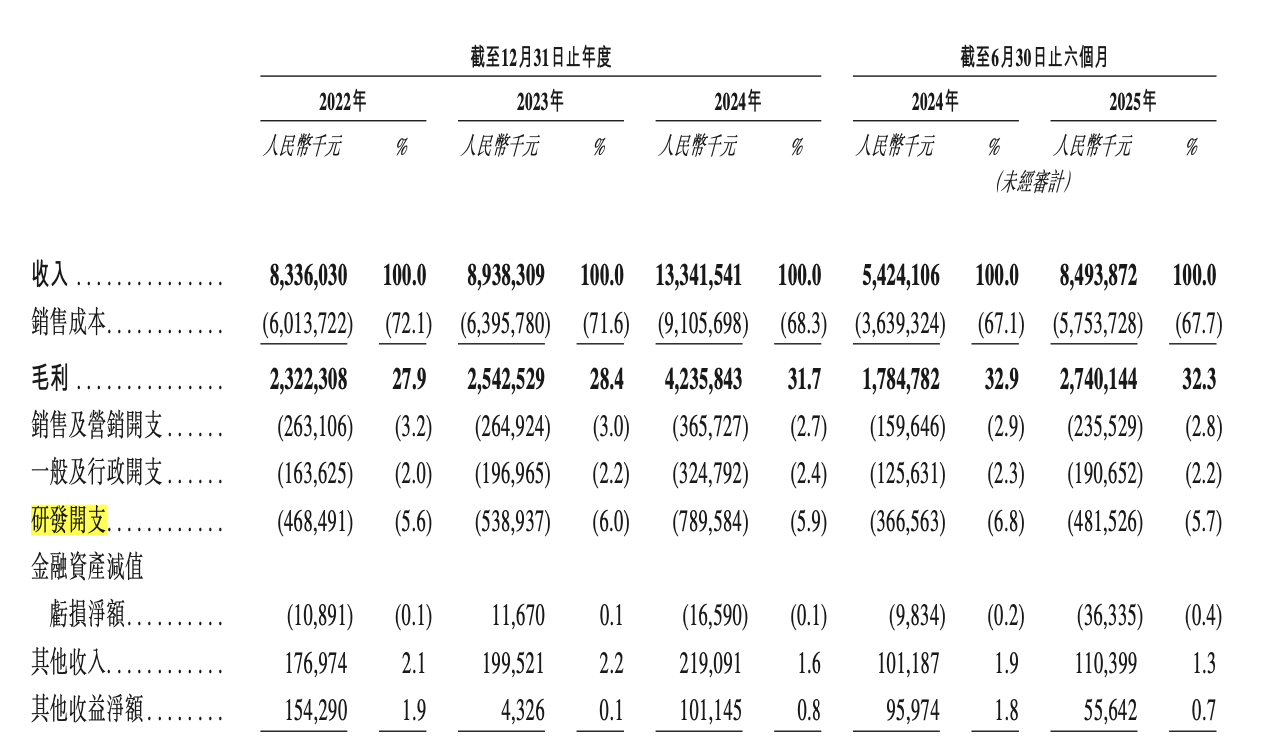 申请版本文件显示,报告期内,公司收入分别为83.36亿元、89.38亿元、133.42亿元和84.94亿元,利润分别为13.62亿元、14.90亿元、25.66亿元和16.78亿元,毛利率也同样逐年上涨,分别为27.9%、28.4%、31.7%和32.3%。