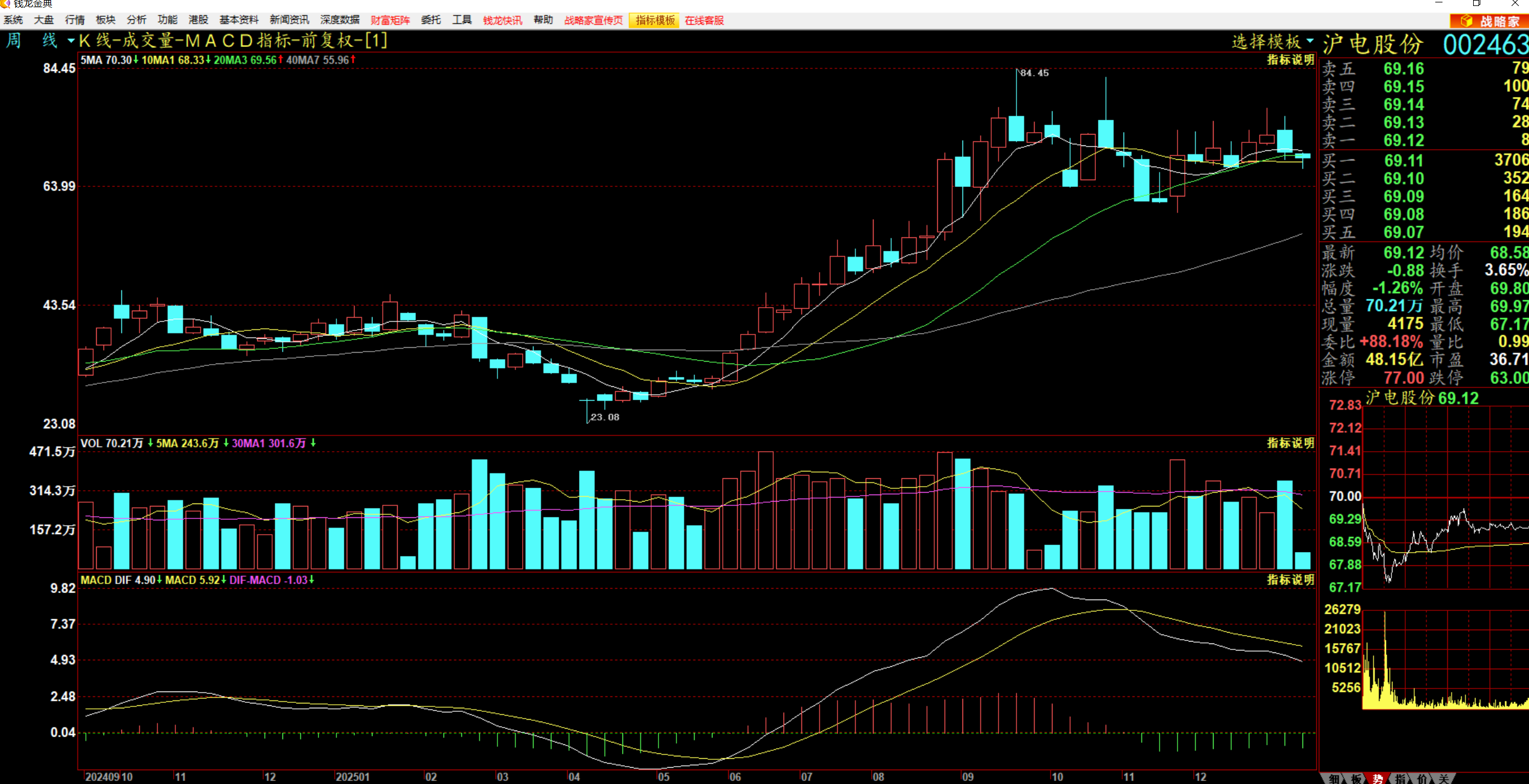 沪电股份创出84元新高后一直调整到现在,目前5.10.20周线粘连,且越来越靠近