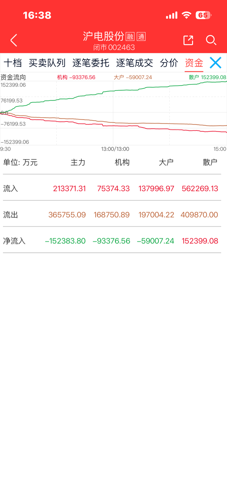 $沪电股份(SZ002463)$ 大资金卖出啊!