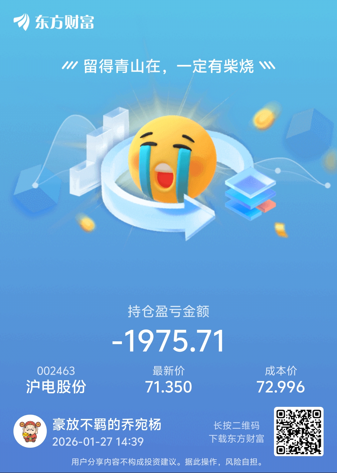 温馨提示: 1.根据《证券法》规定,禁止编造、传播虚假信息或者误导性信息,扰乱证券市场;2.用户在本社区发表的所有资料、言论等仅代表个人观点,与本网站立场无关,不对您构成任何投资建议。用户应基于自己的独立判断,自行决定证券投资并承担相应风险。《东方财富社区管理规定》