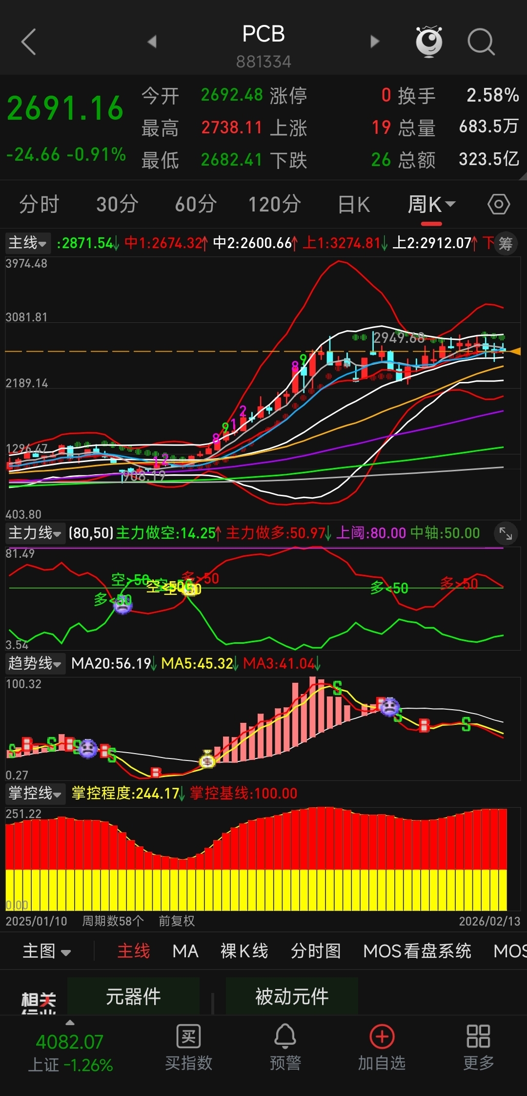 日线、周线持续调整。整个PCB板块走势亦是如此。