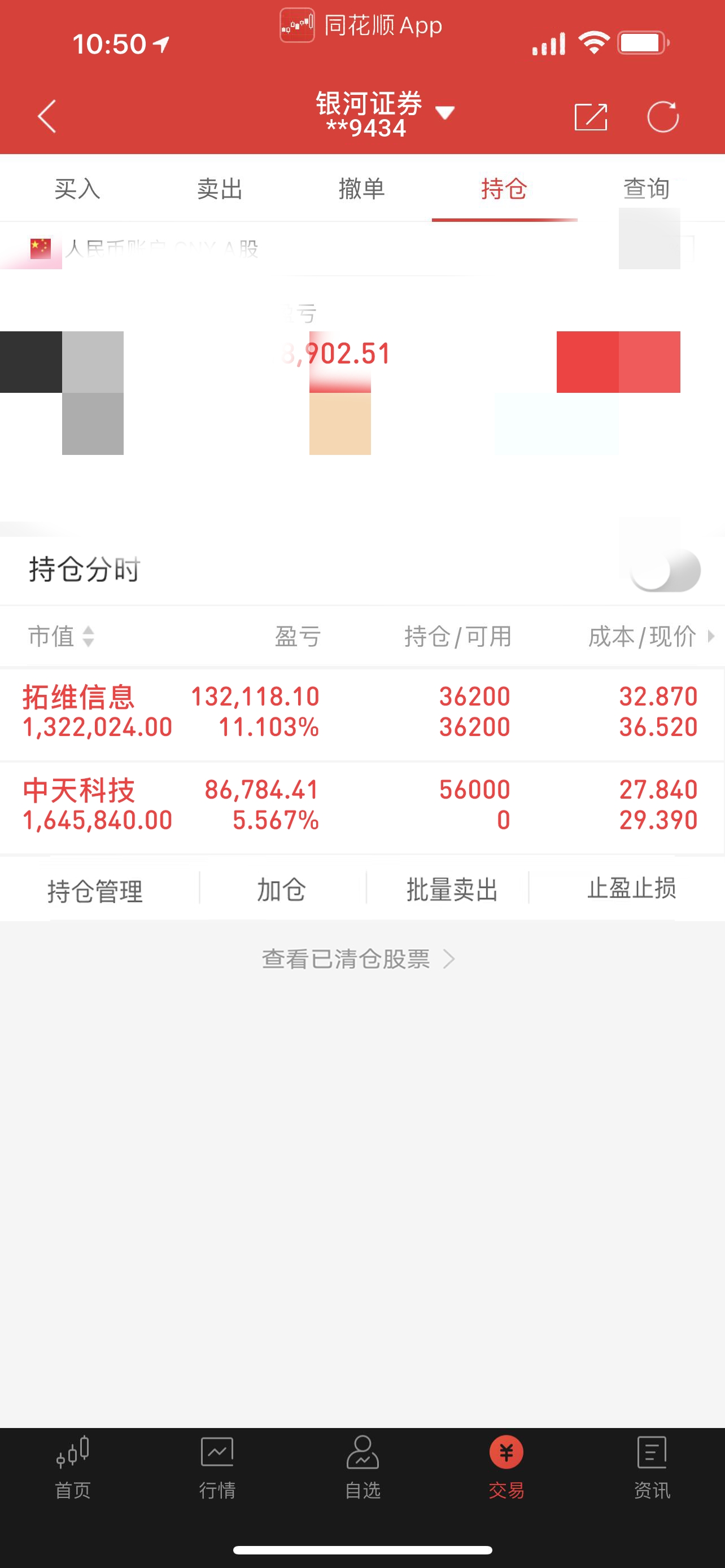 各位股友上午好,实盘记录的第一天!昨天下午两点多布局的拓维信息今日强势涨停了还不
