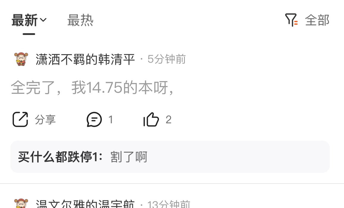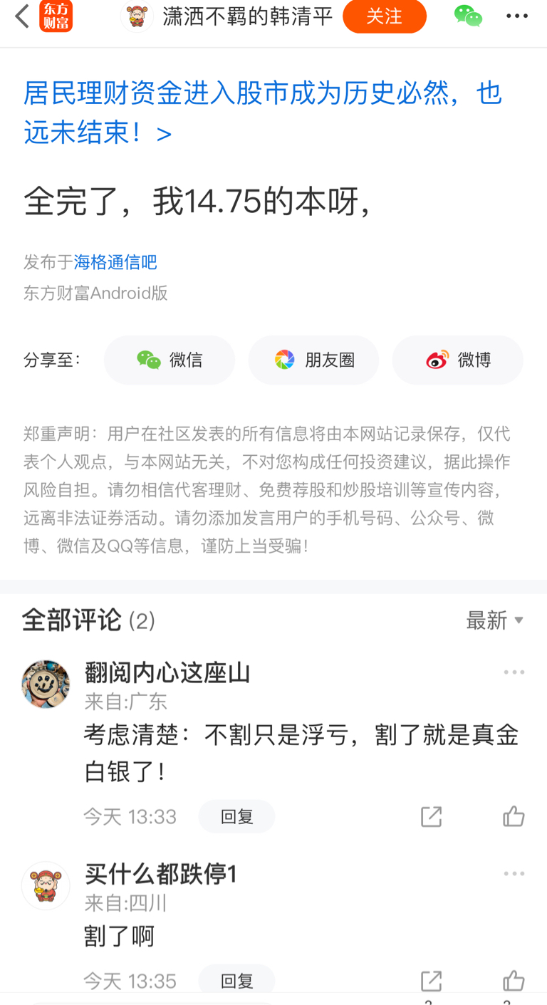 温馨提示: 1.根据《证券法》规定,禁止编造、传播虚假信息或者误导性信息,扰乱证券市场;2.用户在本社区发表的所有资料、言论等仅代表个人观点,与本网站立场无关,不对您构成任何投资建议。用户应基于自己的独立判断,自行决定证券投资并承担相应风险。《东方财富社区管理规定》